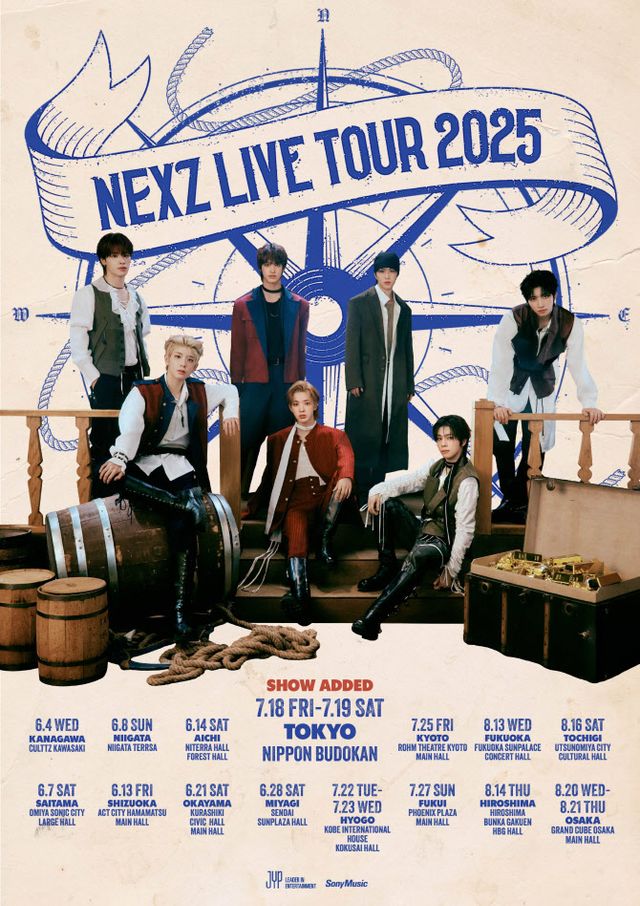 JYP가 12일 오후 넥스지 공식 사회관계망서비스(SNS) 채널을 통해 발표한 바에 따르면 이들은 데뷔 첫 라이브 투어 ‘넥스지 라이브 투어 2025 원 바이트’(NEXZ LIVE TOUR 2025 “One Bite”) 일환으로 7월 18~19일 양일간 도쿄 부도칸에서 2회 공연을 개최한다.