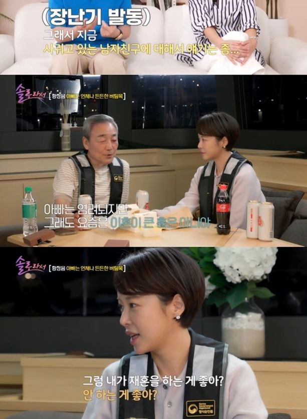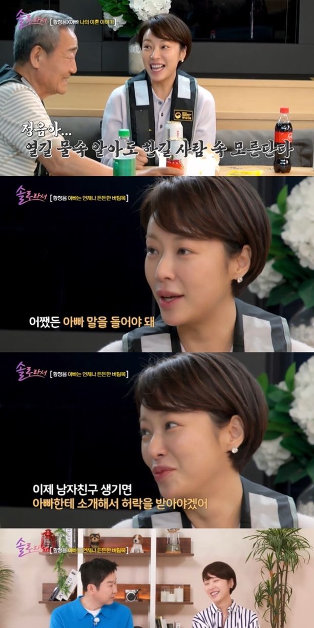 13일 방송된 SBS Plus·E채널 '솔로라서'에서 황정음은 제주도에서 온 아버지와 함께 속 깊은 이야기를 나눴다.