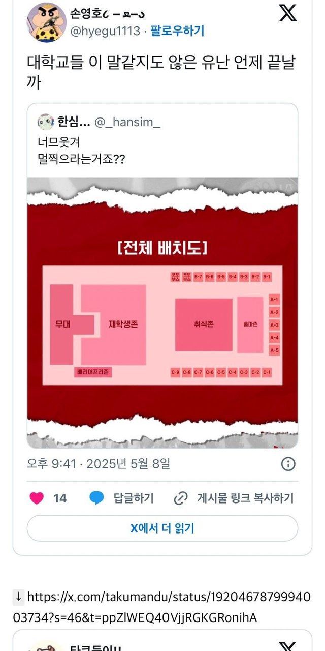 대학축제 좌석 배치 때문에 난리난 트위터