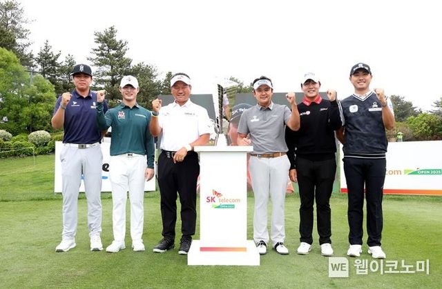 (웹이코노미) 2025 시즌 KPGA 투어 4번째 대회인 ‘SK텔레콤 오픈 2025(총상금 13억 원, 우승상금 2.6억 원)’ 개막을 하루 앞둔 14일 제주 서귀포 소재 핀크스GC 동,서 코스(파71. 7,326야드)에서 포토콜이 진행됐다.