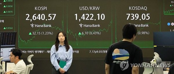 이날 코스피 지수는 전 거래일 대비 32.15포인트(1.23%) 오른 2,640.57로 마감, 사흘째 오름세를 이어갔다.