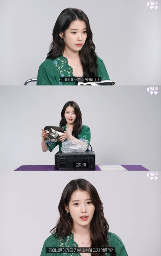 14일 아이유 공식 유튜브 이지금 채널에는 '[IU TV] 1000만 유튜버 이지금의 다이아 버튼 언박싱'이라는 제목의 영상이 업로드됐다.