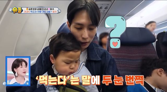 이날 김준호는 은우, 정우와 함께 마카오로 가는 비행기를 탔고 ,긴 비행에 두 형제는 잠에 빠졌다. 기내식이 준비된다고 하자 김준호는 "아빠 먼저 먹는다"고 말했고, 이를 들은 정우는 두 눈을 번쩍이며 반응했다.