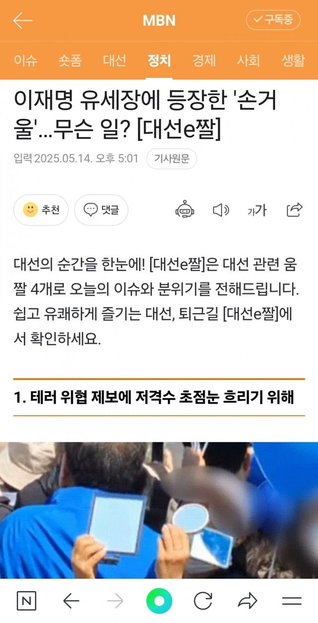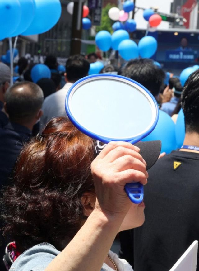 혹시 모를 테러를 위해풍선 (시야 가리기) 손거울 (저격수 초점 흐리기)지참하고 지지하고 응원함..