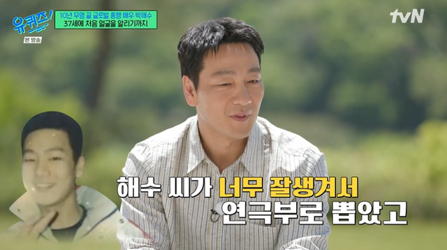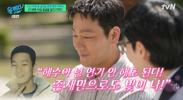 당시 이수영은 박해수를 두고 ‘연기 안 해도 된다. 존재만으로 빛이나’라고 외모를 칭찬하며 발탁했다고. 박해수는 “그때는 외모가 좀 (괜찮았다)”고 겸손해했다. 그렇게 연극영화과 전공까지 이어졌다 덧붙였다.