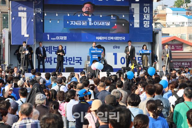이재명 후보는 15일 낮 12시 30분께 전남 광양시 드래곤즈구장 축구장 북문서 유세에 나선다. 이어 오후 1시 20분 여수로 이동해 이순신 광장에서 지역민들에게 지지를 호소한다. 또 이후에는 전남 순천과 목포로 차례대로 이동해 호남 표심 다지기에 나설 예정이다.