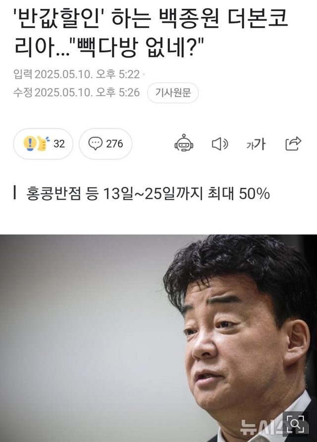 백종원 대표가 이끄는 더본코리아가 오는 13일부터 25일까지 2주께 최대 50% '통합 할인전'을 진행한다.