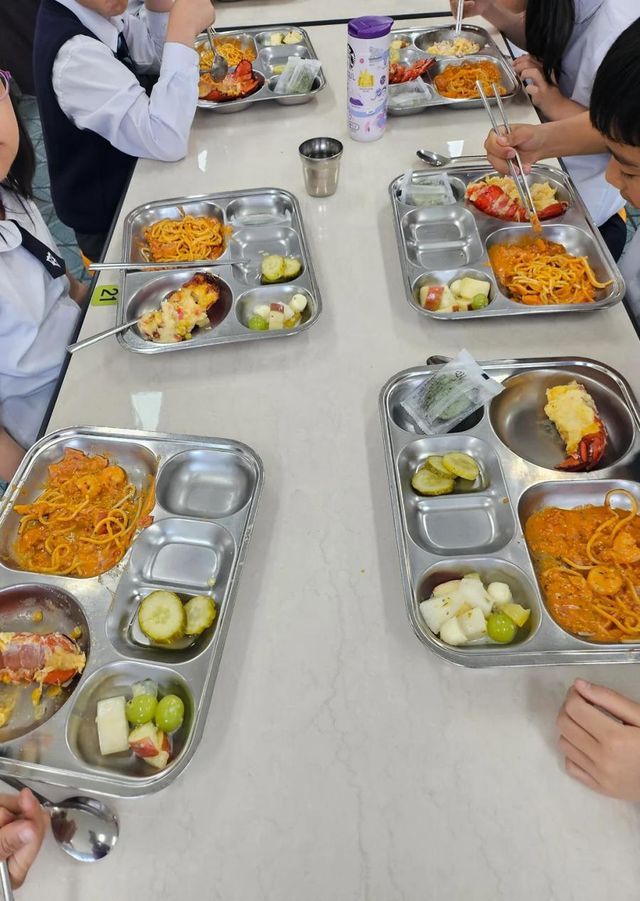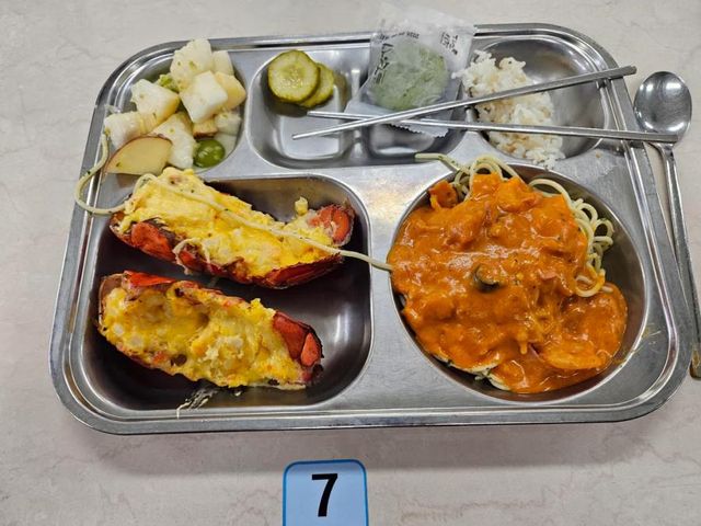급식으로 랍스터 요리가 올라온다고 놀라는 중이네요
