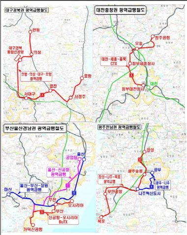 GTX 창시자를 자처하는 김 후보는 수도권과 충청을 잇는 동탄~ 청주공항 광역급행철도를 비롯해 수도권에 국한된 GTX를 부산·울산·경남, 대전·세종·충청, 대구·경북, 광주·전남 등 전국 5대 광역권으로 확장해 전국급행철도망을 구축하겠다고 밝혔다.