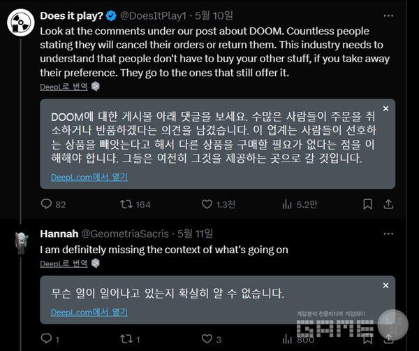 이 논란은 둠 시리즈의 오랜 팬들에게도 큰 실망을 안겼다. @DoesItPlay1은 "게임 역사상 가장 전설적인 프랜차이즈가 이런 수준으로 추락한 것이 슬프다"며, 베데스다가 디스크에 대한 명확한 설명이나 사전 고지를 하지 않은 점을 "거의 사기에 가깝다"고 지적했다.