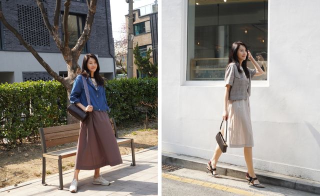 먼저, 캐주얼한 후드 데님 재킷에는 배색 포인트가 들어간 프린트 티셔츠와 하늘하늘한 러플 디테일의 롱 스커트를 매치해 경쾌한 ‘피크닉룩’을 연출했으며, 민소매 스트링 원피스에는 린넨 혼방 소재의 반팔 재킷을 걸쳐 시원한 ‘여름 하객룩’을 완성했다.
