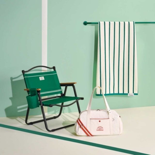 증정품은 와이드 폴딩 체어(그린, 아이보리), 와이드 폴딩 체어 사이드 포켓(그린, 아이보리), 멀티플백(그린, 아이보리), 트렌타월(그린, 아이보리, 스트라이프, 테라코타) 등 총 10종으로 구성됐다. 두 브랜드의 상징성을 강조하면서 실용성을 더한 것이 특징이다.