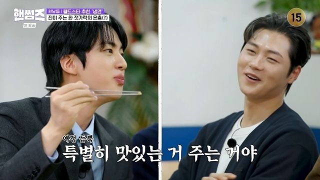 이날 진은 ‘핸썸가이즈’랑 잘 어울릴 멤버로 정국, 뷔를 꼽았다. 진은 “정국이가 진짜 잘 먹는다”라며 정국과 메뉴 추천 원정이 어울린다고 했다가, 팀을 나눠 대결을 펼치는 분위기가 되자 “뷔가 잘 어울린다”고 바꿔 눈길을 끌었다.