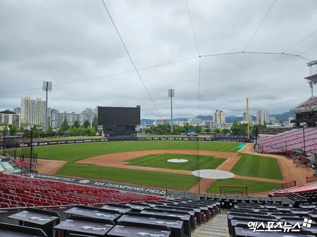 이날 오전 광주 지역에 비가 내리면서 날씨가 변수로 떠오르는 듯했지만, 비의 양이 점점 줄었다. 오후 2시 50분 현재 비가 완전히 그친 상태다. 홈팀 KIA 선수들은 그라운드에서 훈련을 시작했다.