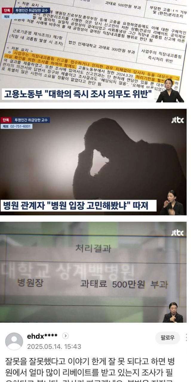 전공의 라베이트 폭로하고 조리돌림 당하는 의대 교수