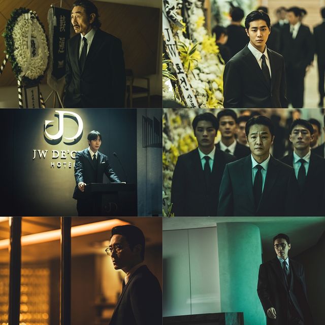 마찬가지로 장례식장을 찾은 ‘이금손’(추영우)과 ‘최성철’(조한철)의 모습 역시 눈에 띈다. 일평생 조직을 이끌어 온 아버지 ‘이주운’과 달리, 조직에 몸담지 않고 자신의 길을 걷는 인물인 ‘이금손’은 최근 넷플릭스 시리즈 ‘중증외상센터’, 드라마 ‘옥씨부인전’ 등을 통해 활약, 제61회 백상예술대상 방송부문 남자 신인 연기상을 수상하며 탄탄한 연기력을 입증한 추영우가 연기한다. ‘이주운’의 아들이기 전에 현직 검사로서 자신만의 야심을 품고 있는 ‘이금손’을 그려낼 추영우의 냉철한 모습은, 그의 새로운 연기 변신도 기대하게 한다.