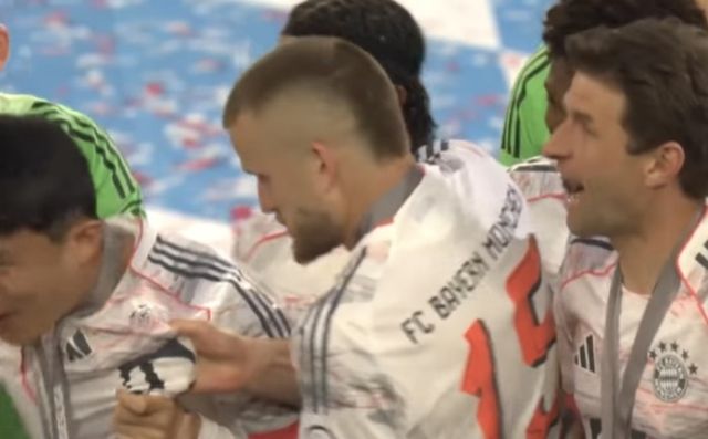 상식이 시작되자 주장 마누엘 노이어가 가장 먼저 시상대에 올랐다. 노이어는 마이스터샬레(분데스리가 우승 트로피)를 전달받았지만 이를 곧장 들지 않았다. 그는 팀의 상징적인 존재이자 이번 시즌을 끝으로 팀을 떠나는 토마스 뮐러에게 트로피를 건넸다.