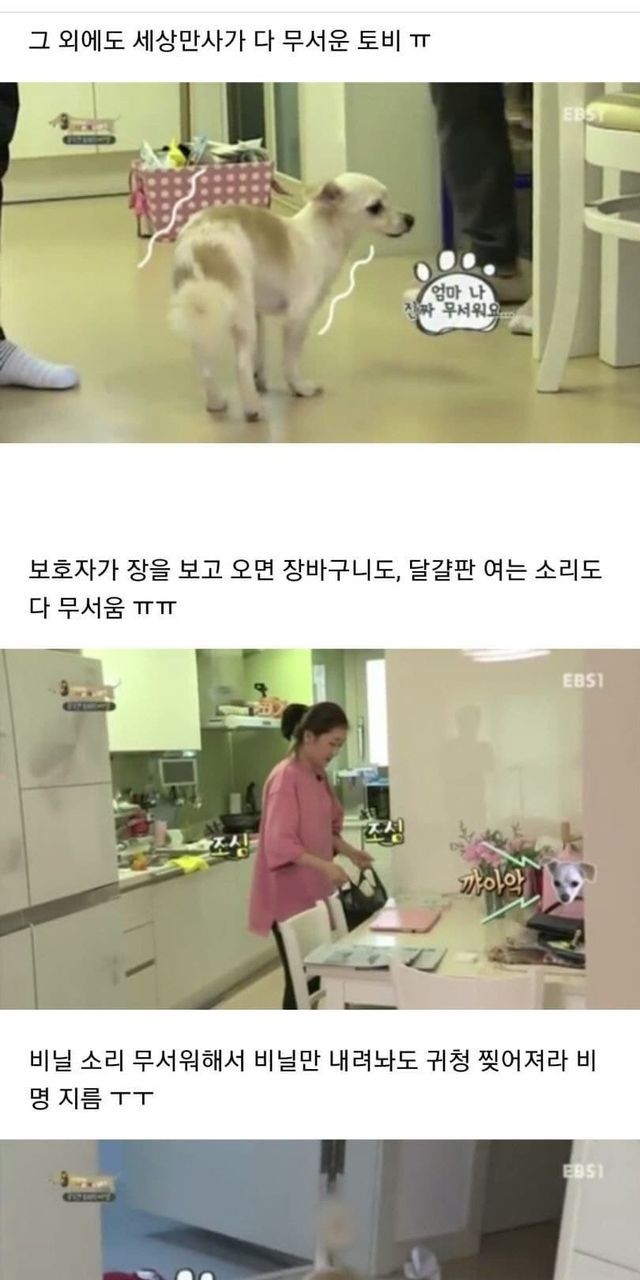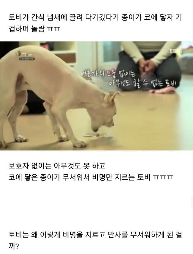 훌쩍훌쩍 유기견이었던 댕댕이 토비가 바람만 불어도 비명을 지르는 충격적인