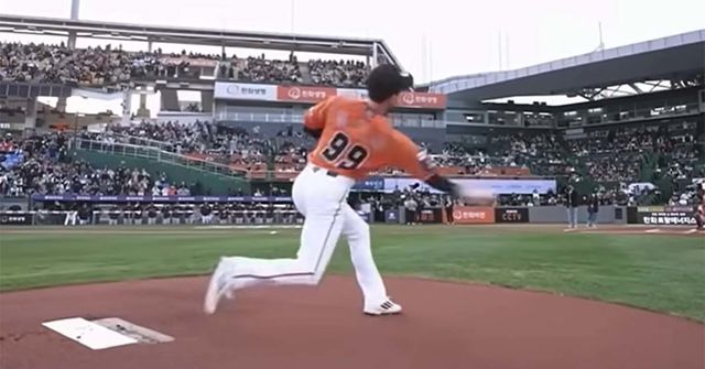 정성일의 시구 모습. / '1분크보 1boon_kbo' 유튜브