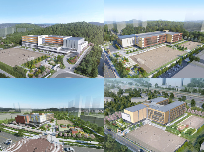 (왼쪽 위부터 시계방향) 동탄 11고, 동탄 13중, 봉담2-1초, 양산1중 조감도. © 태영건설