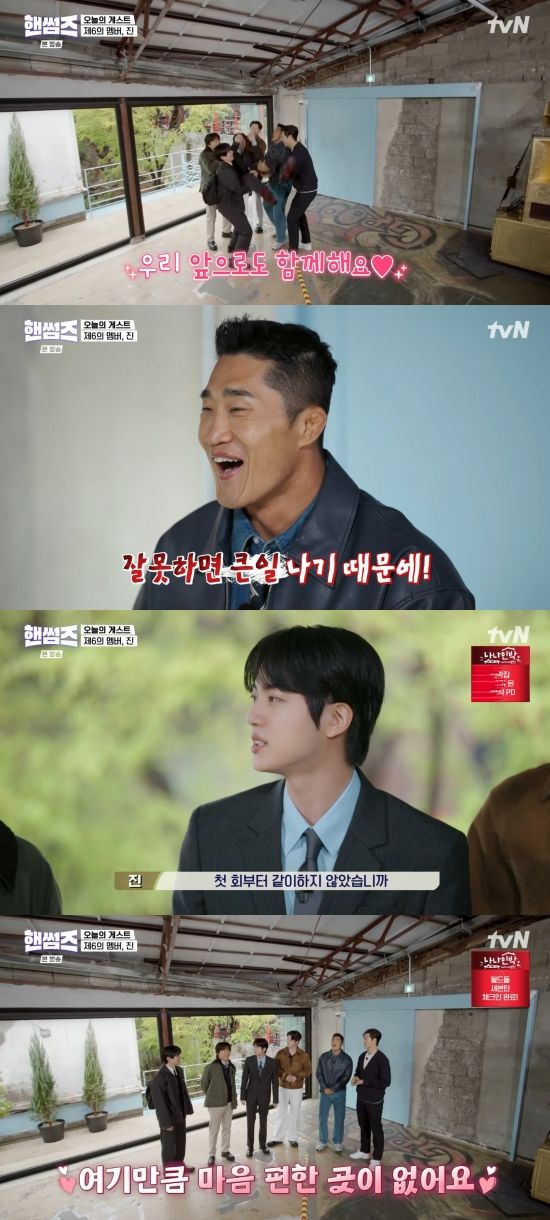 진은 "제가 이번에 앨범 프로그램 여러 개 도는데 정해야 되지 않냐. 어디를 나갈지. '핸썸가이즈' 우선으로 꼭 넣어달라고 했다. 첫 회부터 같이 하지 않았냐. 여기만큼 마음 편한 데가 없다"라며 털어놨다.