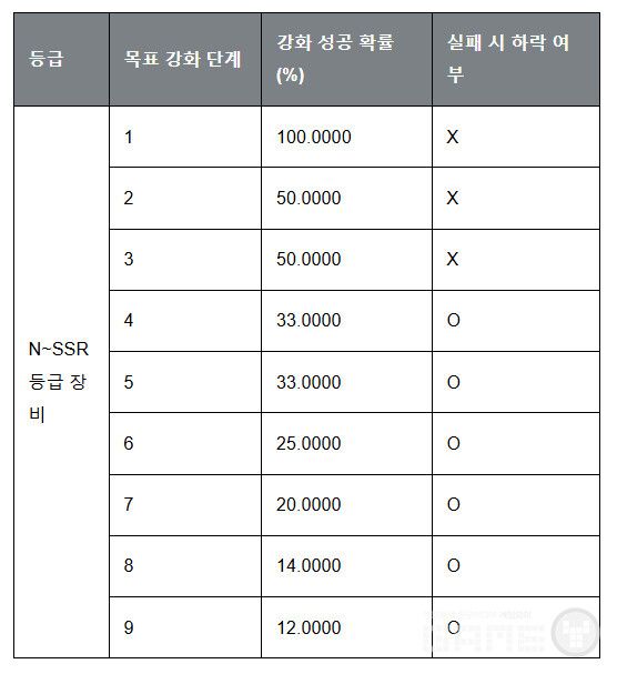 고급 럭키 박스와 장비 강화 확률이 대폭 상향됐다. 고급 럭키 박스의 SSR 장비 확률이 0.45%에서 2.25%로, SR은 1.35%에서 6.75%로 크게 올랐다. 장비 강화 확률도 모든 등급에 걸쳐 상향 조정되어 4강 33%, 9강 12% 수준으로 설정되었다. 기존 이용자 보상으로 럭키 쿠폰과 강화 재화도 지급된다.