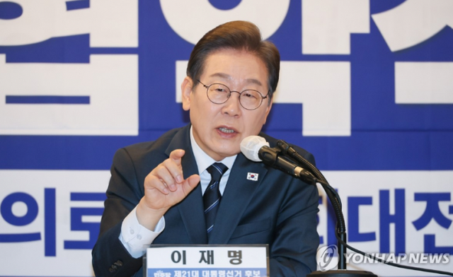 더불어민주당 이재명 대선 후보가 1일 서울 중구 한국프레스센터에서 열린 한국노총과의 정책 협약식에서 인사말을 하고 있다. (사진=연합뉴스)