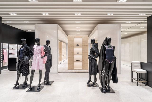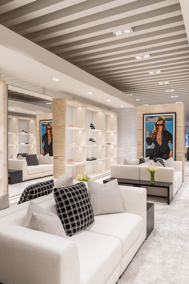 높은 층고와 커다란 창, 화사하고 따듯한 베이지 톤의 석재를 사용해 개방감을 주는 부티크는 하우스의 최신 레디-투-웨어 컬렉션을 비롯해 슈즈, 백, 액세서리, 워치, 화인 주얼리를 선보입니다. 공간은 세 개의 넓은 살롱을 연결하는 구조로 이루어져 있어요. 가장 먼저 보이는 것은 하우스의 2025 코코 비치 컬렉션과 2025 봄-여름 레디-투-웨어 컬렉션과 아이코닉 백 컬렉션.