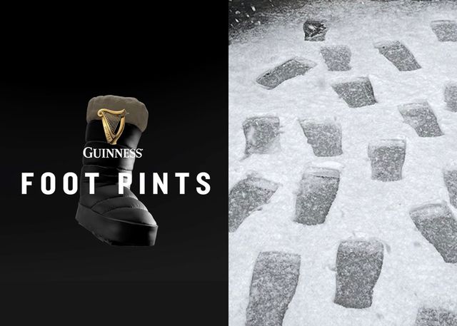 비슷하지만 다른 결의 광고들도 재미있었다. 요즘처럼 눈이 가득 내리는 날 장화를 만드는 것이다. 대신 이 장화는 독특한 발자국을 남기는데. 눈 위를 걸으면 기네스 잔 모양의 발자국이 찍힌다.
