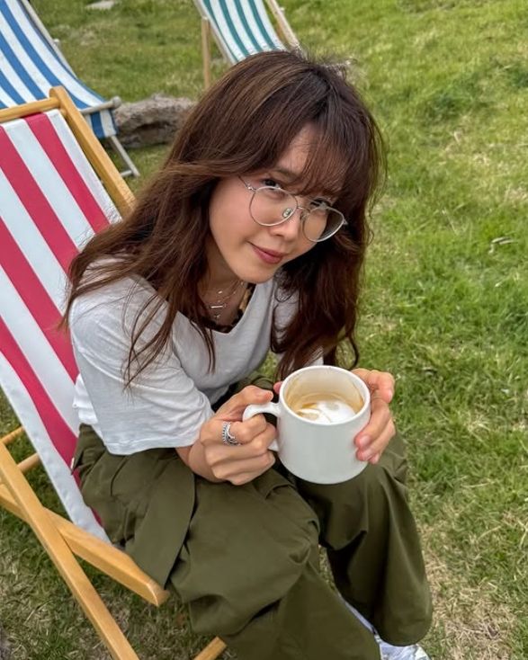 '폭싹 속았수다' 의상을 벗은 채정안은 화이트 반소매 티셔츠에 카키색의 와이드 팬츠를 매치해 편하면서도 힙한 분위기를 완성시켰다.