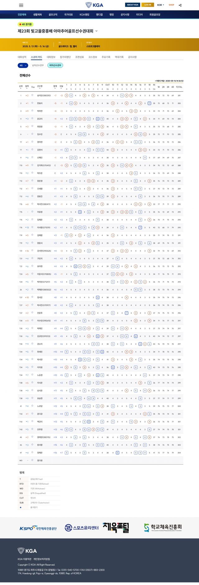 ▲제23회 빛고을중흥배 아마추어선수권 4라운드 순위(여자선수권부)