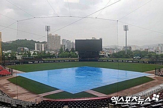 하지만, 이날 광주 지역에 저녁까지 이어지는 기상청 비 예보로 우천 취소가 유력해졌다. 이미 광주-기아 챔피언스필드엔 대형 방수포가 일찌감치 깔렸다. 비도 상당한 양이 계속 쏟아지고 있다.
