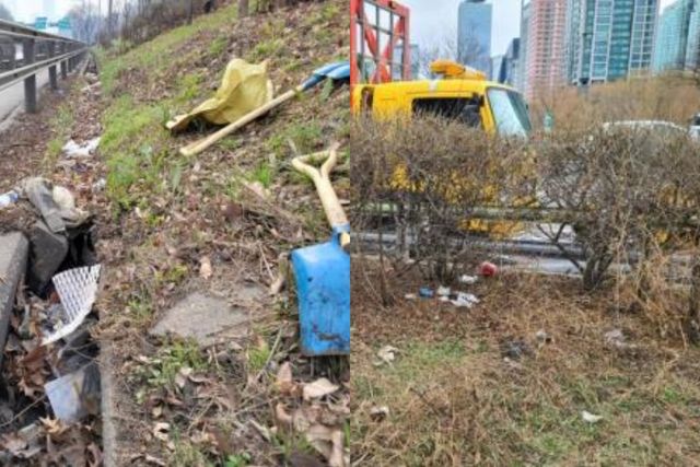 자동차 전용 도로에 버려진 쓰레기들 / 서울시설공단 제공