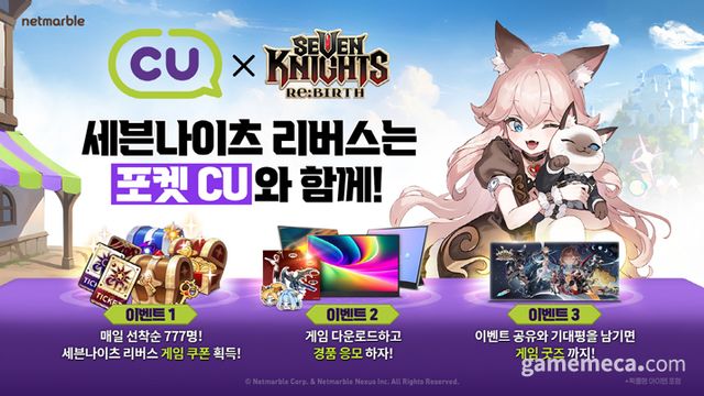 넷마블은 넷마블넥서스가 개발한 수집형 RPG 세븐나이츠 리버스(Seven Knights Re:Birth)에서 CU 제휴 이벤트를 한다.
