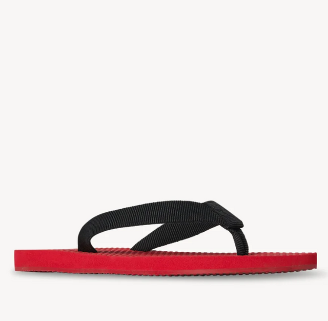 베이식한 디자인에 레드 컬러 밑창이 돋보이는 플립플랍 96만원대 The Row.