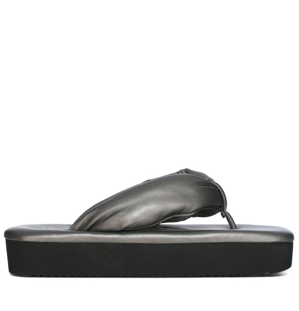 메탈릭한 소재를 사용한 플랫폼 플립플랍 1백 49만원대 Rick Owens.
