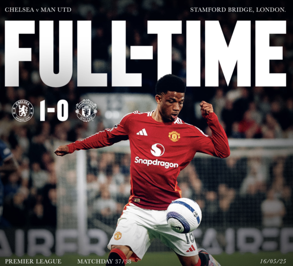 맨유도 이에 질세라 첼시에 무릎을 꿇었다. 17일 영국 런던의 스탬퍼드 브리지에서 2024-2025 PL 37라운드를 치러 맨유가 첼시에 0-1로 졌다. 맨유는 승점 39점으로 리그 16위에 머물렀다.