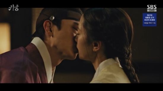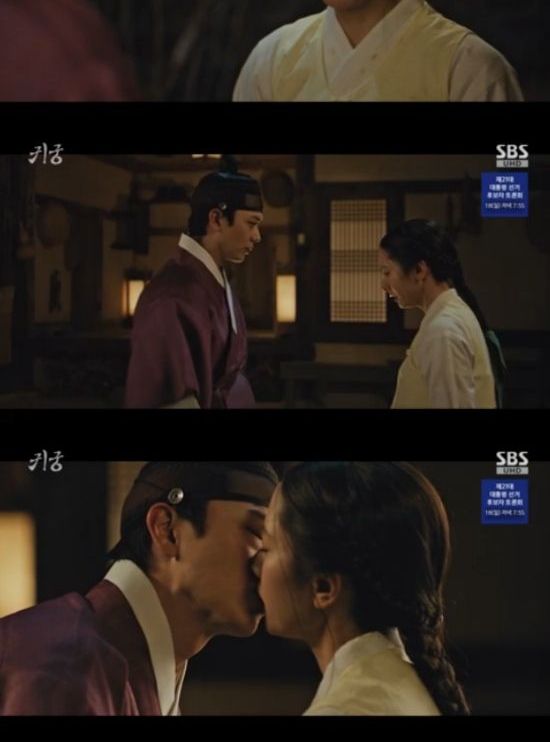 (엑스포츠뉴스 오수정 기자) '귀궁'에서 육성재와 김지연이 서로에게 이끌려 입맞춤을 했다.