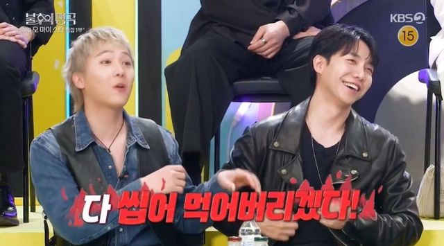 그러나 이홍기는 “저한테 뭐라고 한 줄 아냐. 다 씹어먹겠다고 했다”라고 폭로해 이승기를 당황케 했다. 이홍기는 “근데 라인업을 보고선 우리 걸 즐기자고 했다”라고 덧붙였다.
