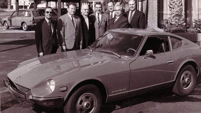 1960~70년대 닛산의 미국 수출 붐을 이끈 일등공신인 가타야마 유카타 미국 닛산 사장(오른쪽에서 두번째). 미국에서 딜러들과 함께 찍은 사진이다. 일본차가 ‘듣보잡’ 취급을 받던 시절, 세심한 서비스로 현지 딜러와 고객들 마음을 사로잡아 ‘닷선’을 미국에서 가장 인기 있는 수입차 브랜드로 만들었다. 경영능력이 뛰어나고 인품도 훌륭할 뿐 아니라, 닛산 창업자 아유카와와도 친척 관계였다. 이런 점이 오히려 그를 견제받게 만들었다. 닛산 홈페이지