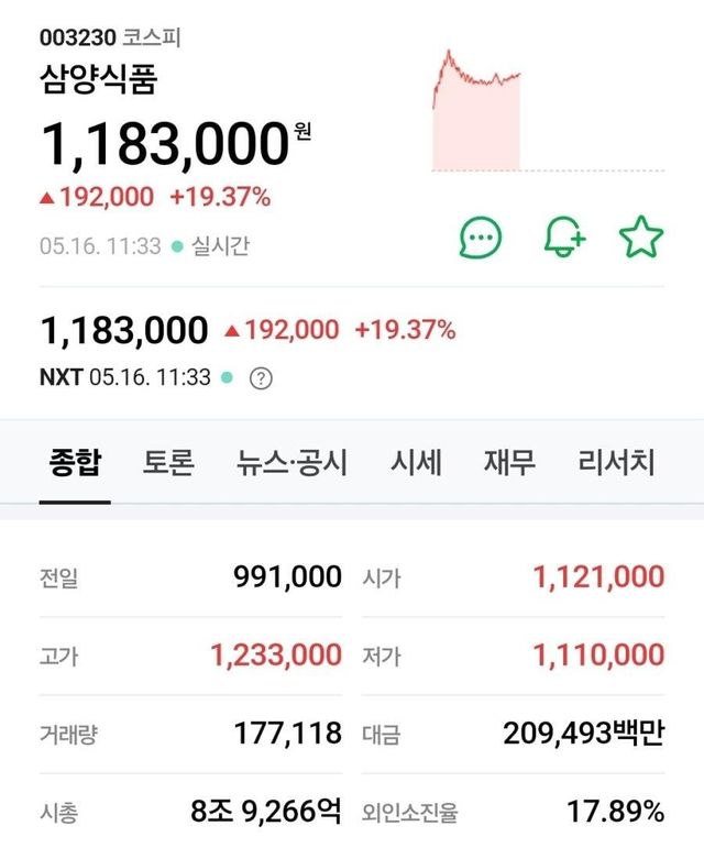 5만원짜리 주식이 곧 120만원 앞두고 있음 ㄷㄷ