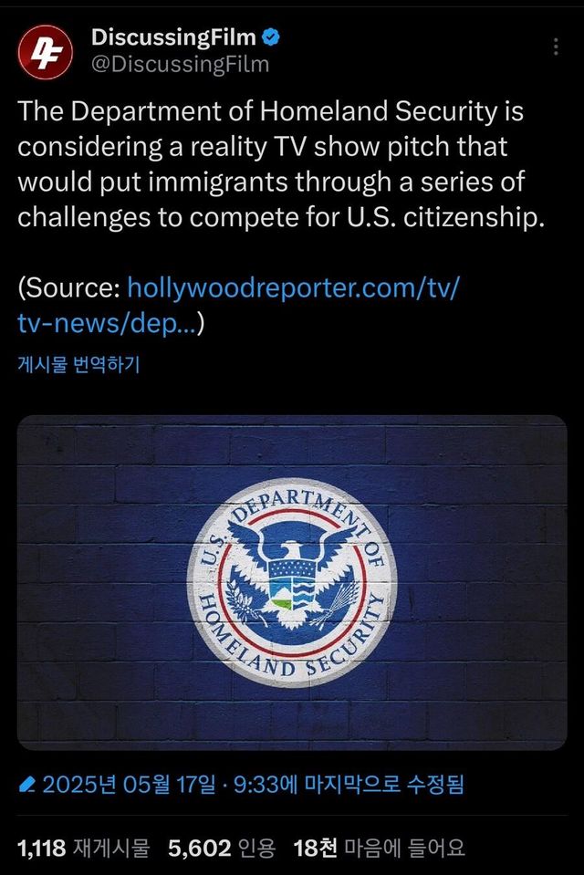 이민자들이 일련의 도전을 통해 미국 시민권을 얻기 위해 경쟁하는 리얼리티 TV 쇼 제작 고려중