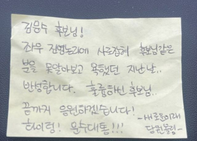 새미래 지지자는 손편지에서 이렇게 전했다.