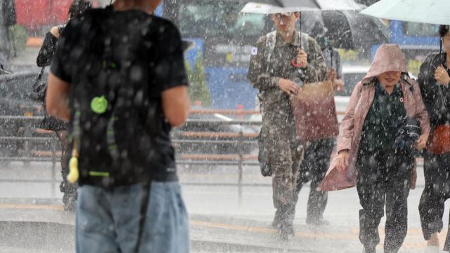 지난 16일 서울역 일대에 강한 비가 내리고 있는 모습. / 연합뉴스