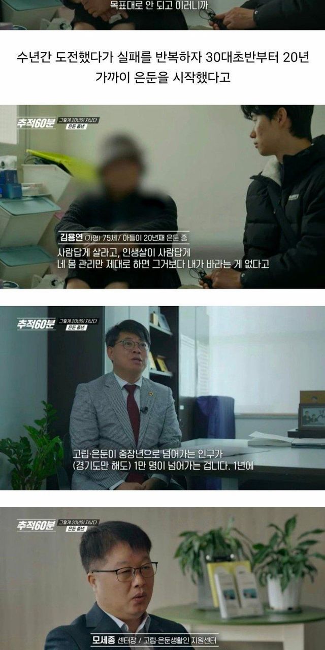 요즘 늘어나고있다는 중년 은둔