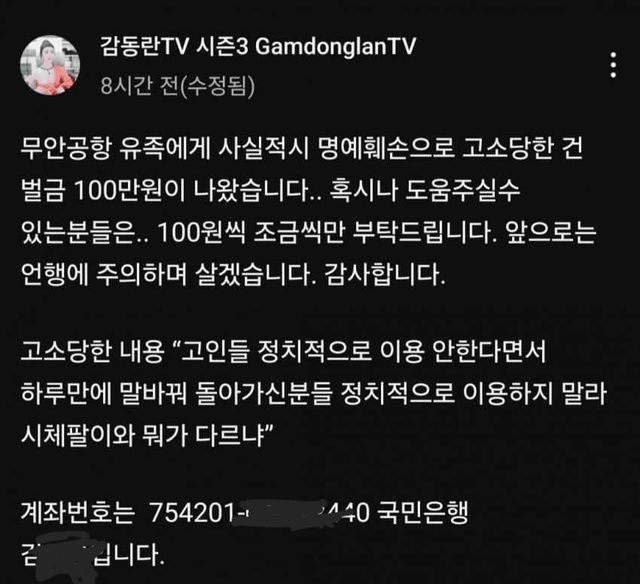 발언 몇 번 잘못해서 나락갔는데 돈 없나보네 파이팅!