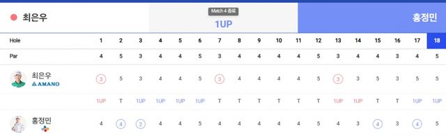 -최은우(3승2패) VS 홍정민(4승1무) 1UP, 4강 진출