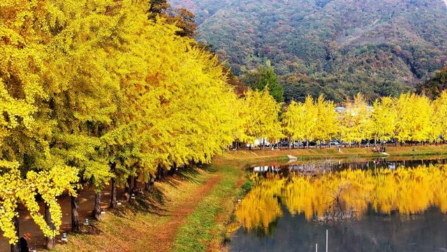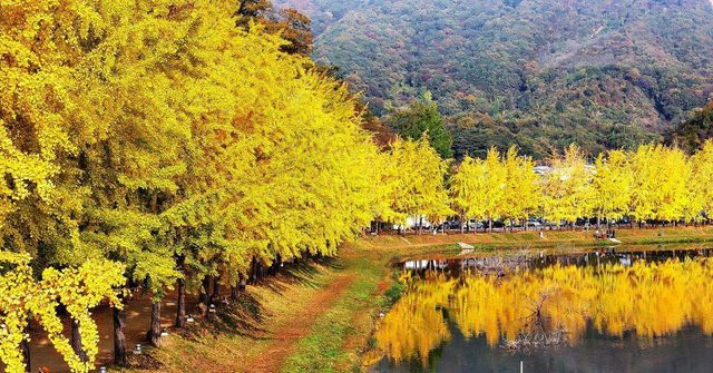 충북 괴산군 문광면 양곡리 문광저수지 은행나무길. / 뉴스1