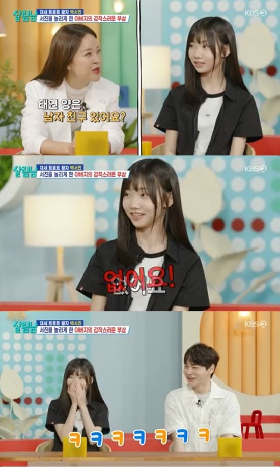 17일 방송된 KBS 2TV '살림하는 남자들 시즌2'에서는 김태연이 남자친구 질문을 받고 철벽을 치는 모습이 전파를 탔다.