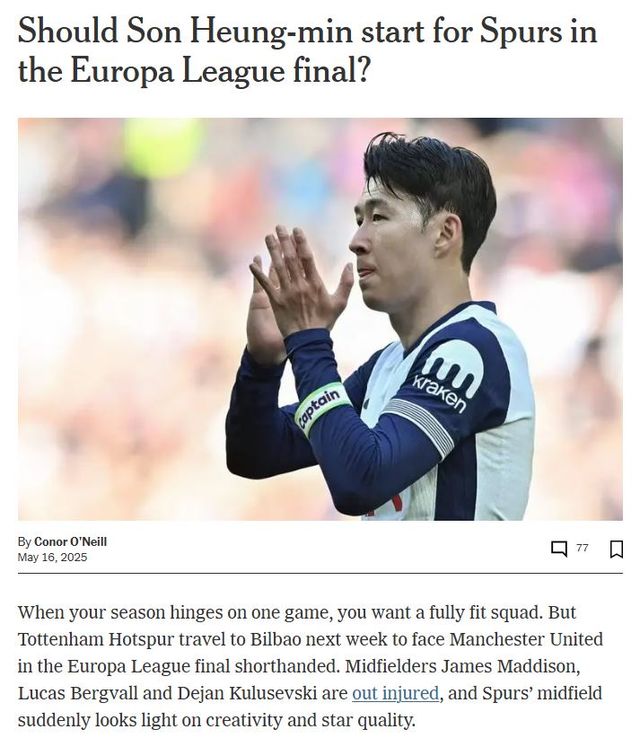 글로벌 스포츠 매체 '디 애슬레틱' 역시 16일자 기사를 통해 손흥민이 결승전에 출전해야 되는 이유에 주목하는 심층 보도를 게재했다.